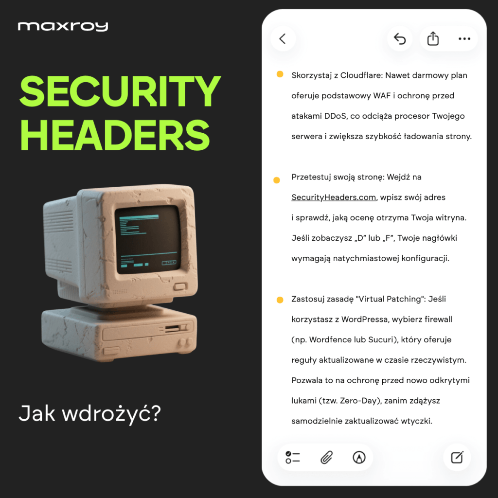 To proste instrukcje wysyłane przez Twój serwer do przeglądarki użytkownika. Informują one przeglądarkę (np. Chrome czy Safari), jak ma się zachowywać, aby chronić osobę odwiedzającą Twoją stronę.